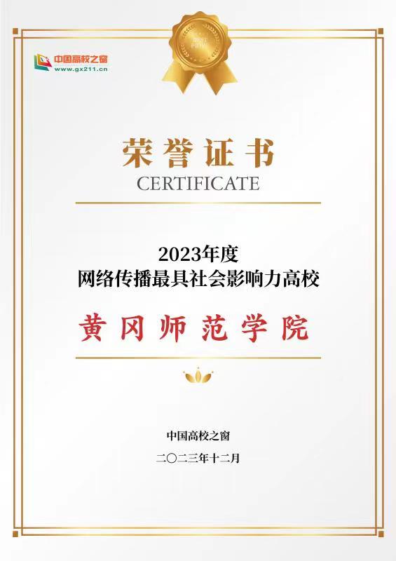 本网讯 近日,从中国高校之窗网获悉,我校因在2023年教育新闻宣传工作方面表现突出,被授予“2023年度网络传播最具社会影响力高校”荣誉称号。