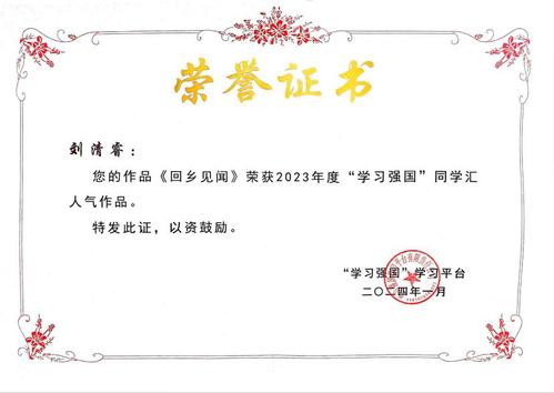 本网讯 近日,“学习强国”学习平台对“学习强国”同学汇工作进行表彰,我校被评为“学习强国”同学汇2023年度先进工作单位,张云发老师的作品《透过栅栏,看蔷薇“城堡”里的活力四射》、王瑞娟老师的作品《共同见证!智慧校园启动》、刘清睿同学的作品《回乡见闻》荣获2023年度“学习强国”同学汇人气作品。
