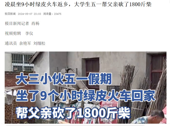 “自己并不是专门为砍柴回家的。”薛炜解释说,在当地,孩子们帮家里做事很普遍,小一点的时候插秧、割油菜,长大了可以干点重活分担家务。“没想到自己记录生活的视频,发到网上后引发这么大的关注。”薛炜说,五一期间天气凉爽一些,再晚些回家,可能到夏天了,天气就炎热了,再干活就更费力了。